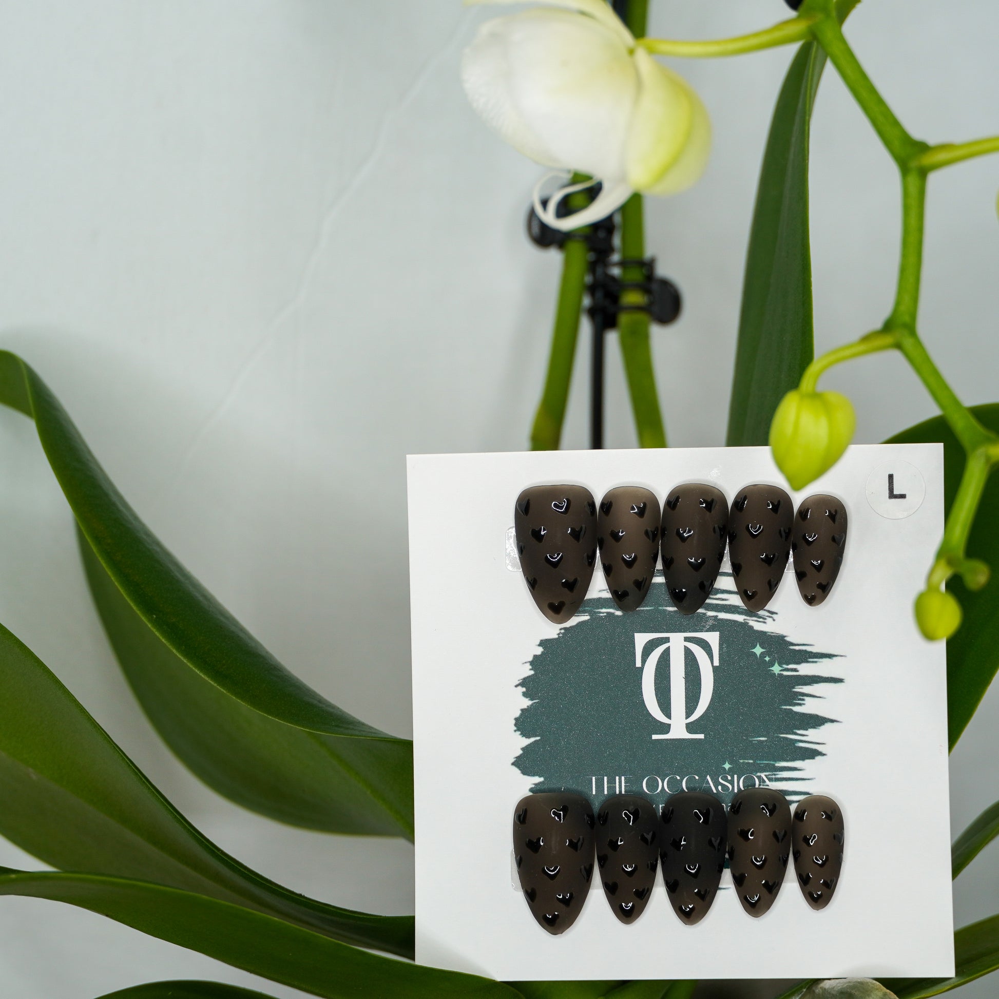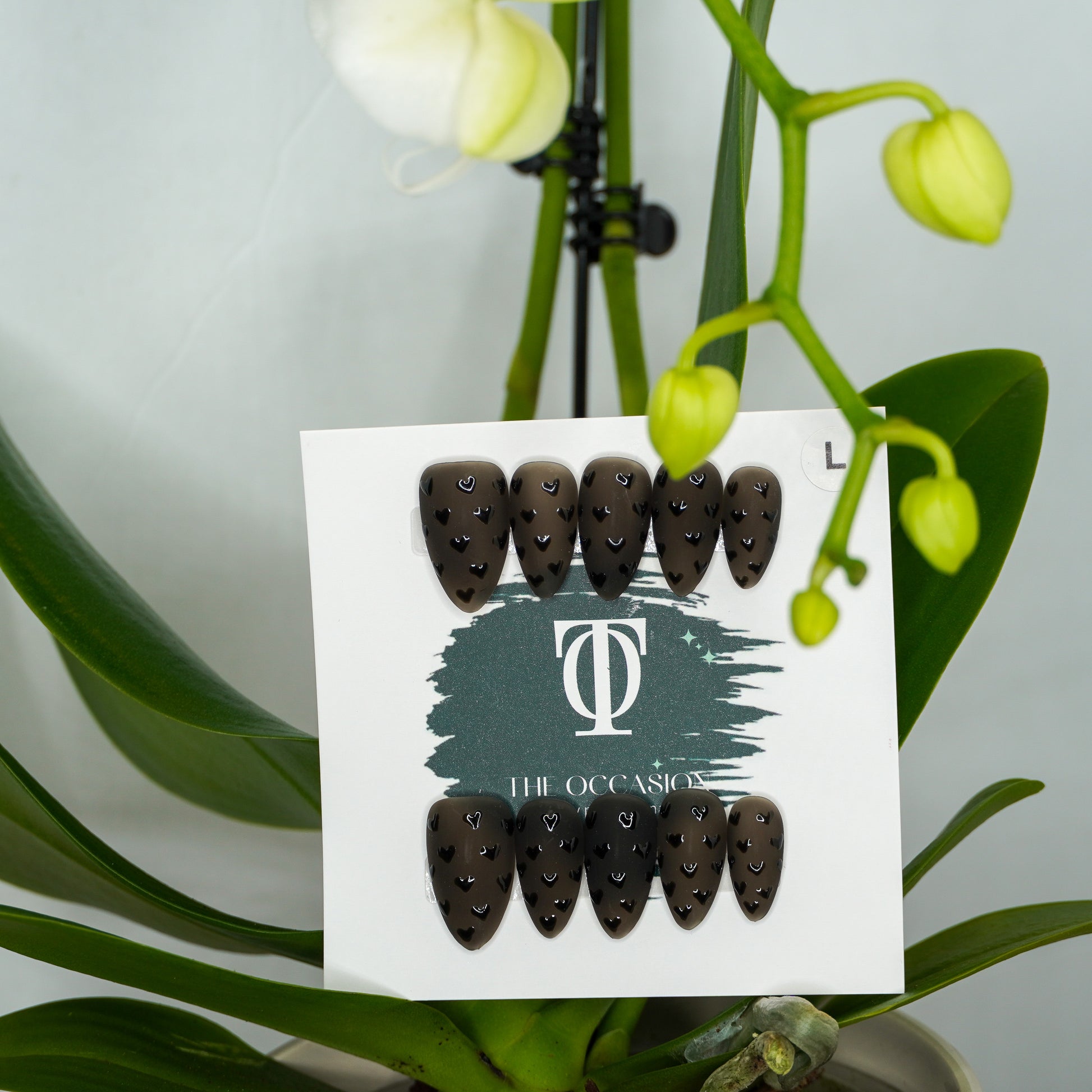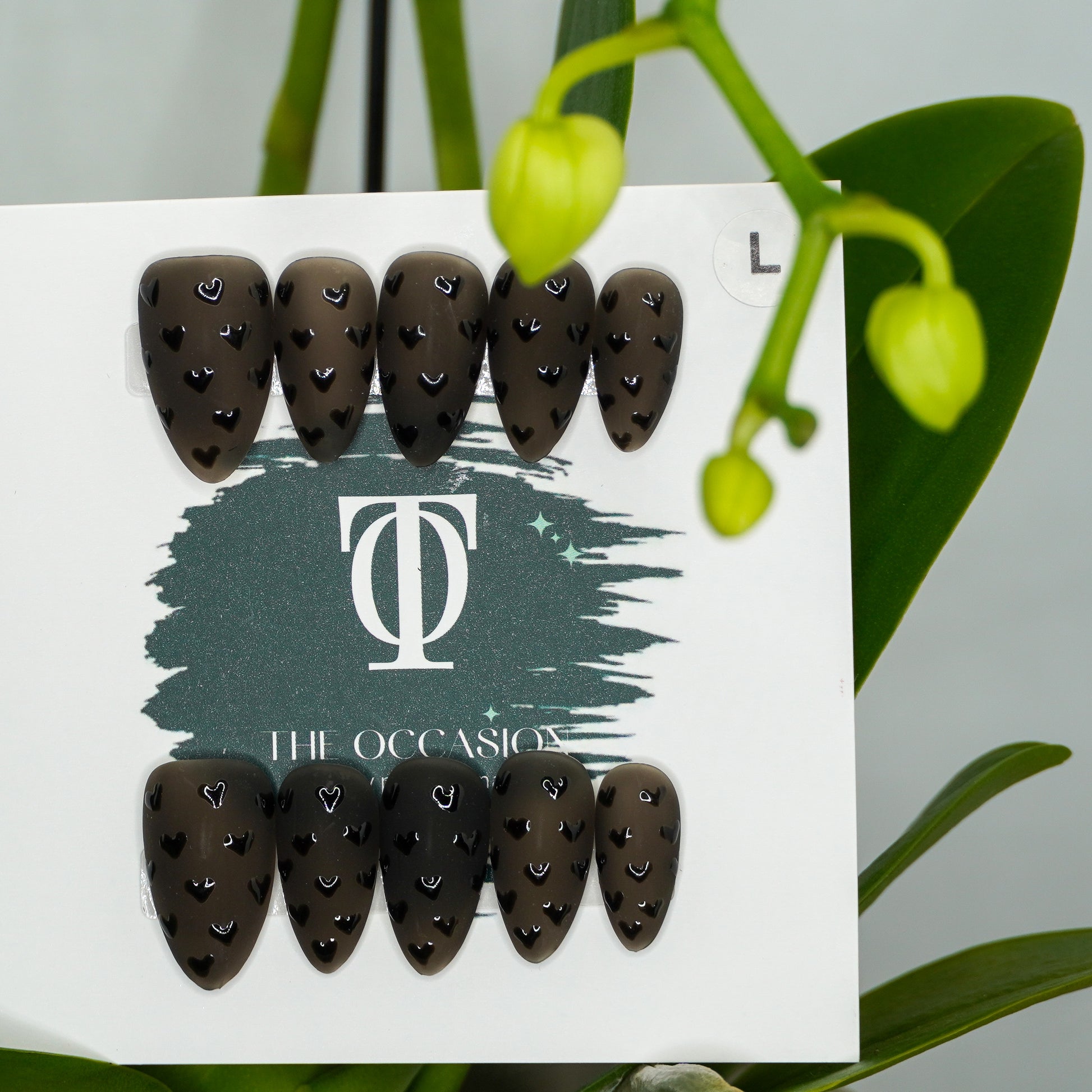 Style: Sheer Black Matte Base with Glossy Tiny Heart Accents