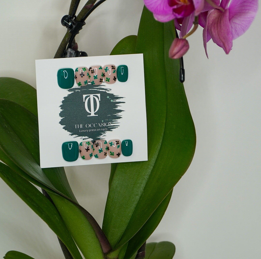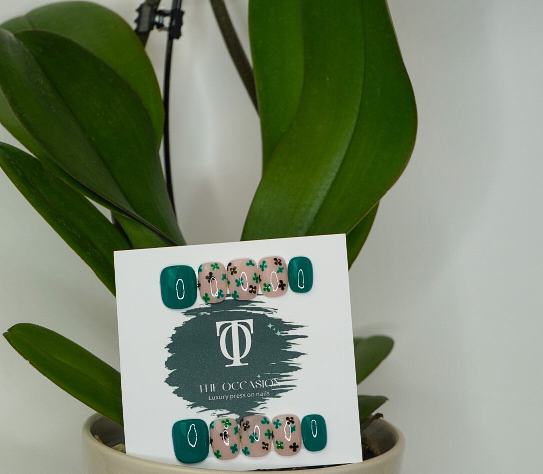 Style: Jade Green Solids with Nude Base & Hand-Painted Jade Flowers