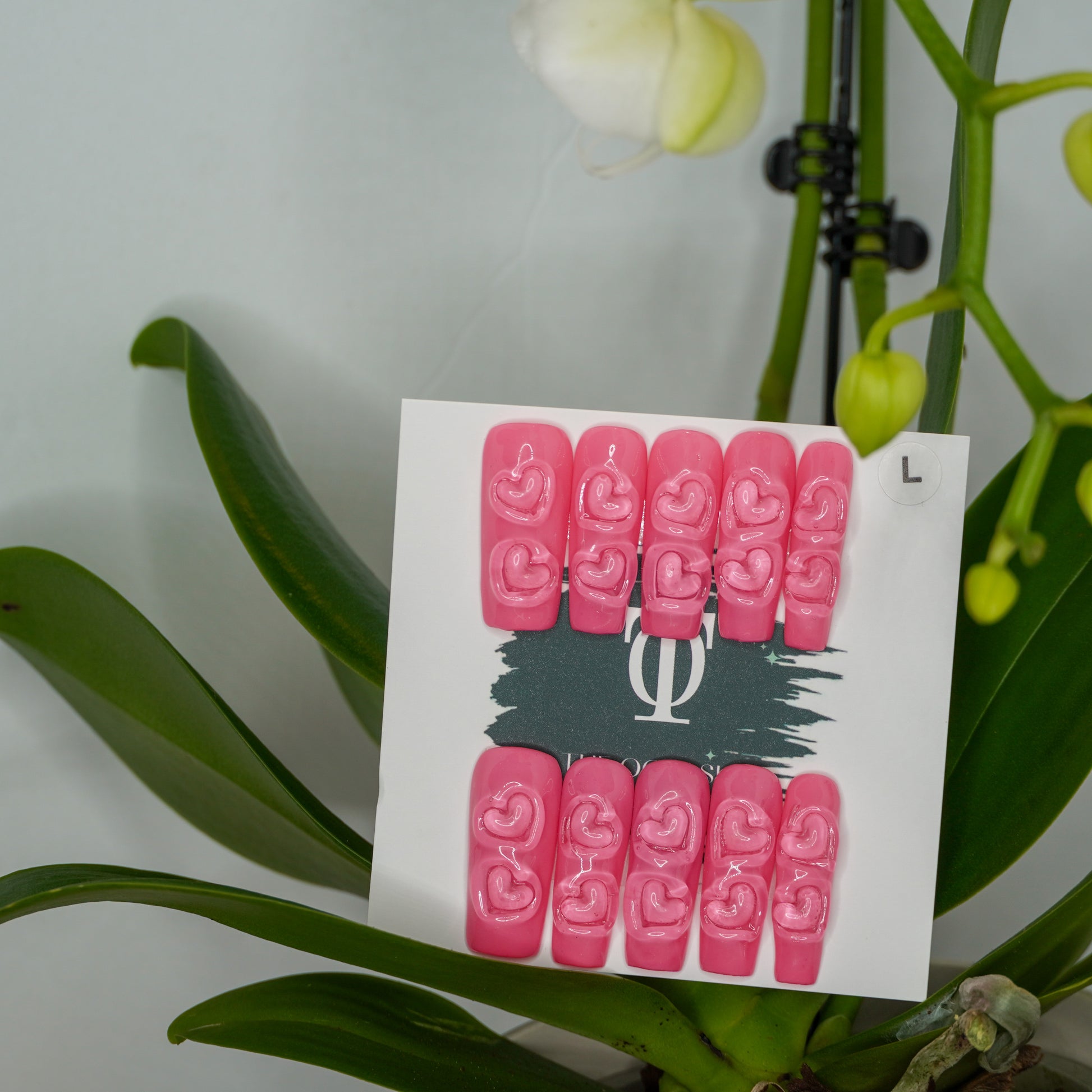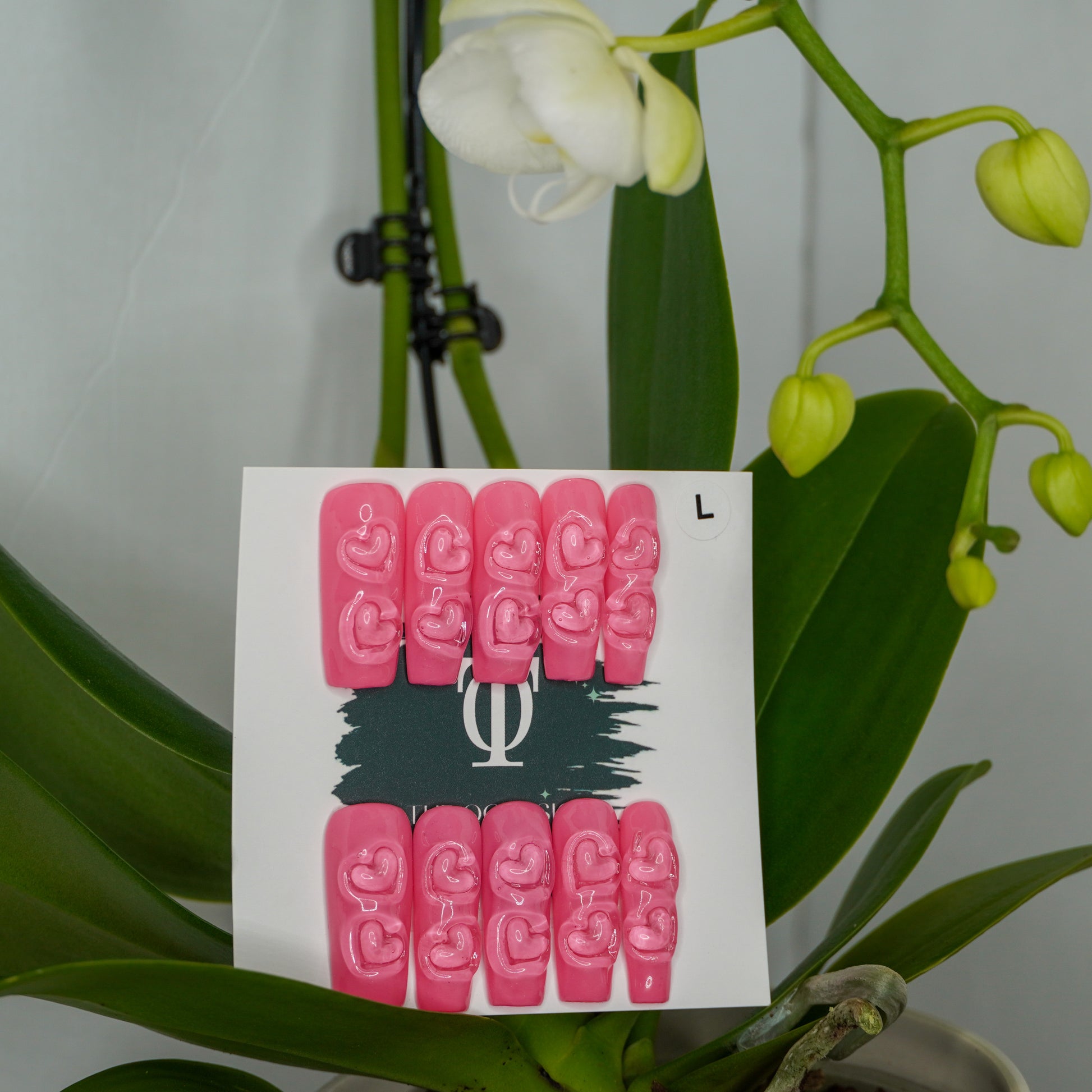 Fall in love with this romantic long square press-on nail set, featuring a soft pink base accented with clear 3D heart embellishments placed at the base of each nail. Feminine, playful, and elegant, this design is perfect for Valentine’s Day, date nights, anniversaries, or anytime you want a touch of love in your look.